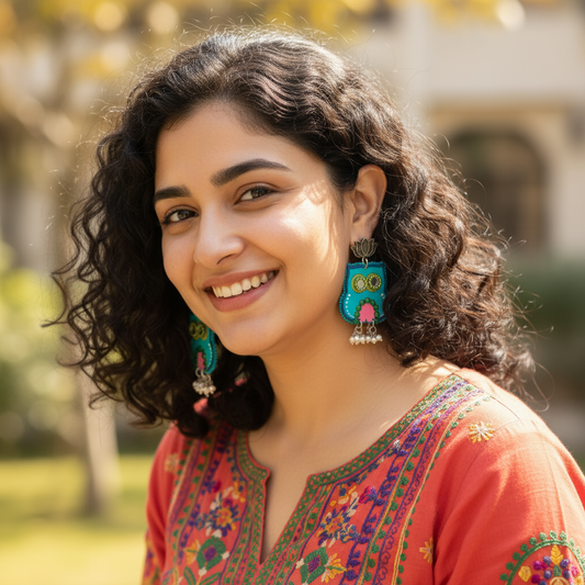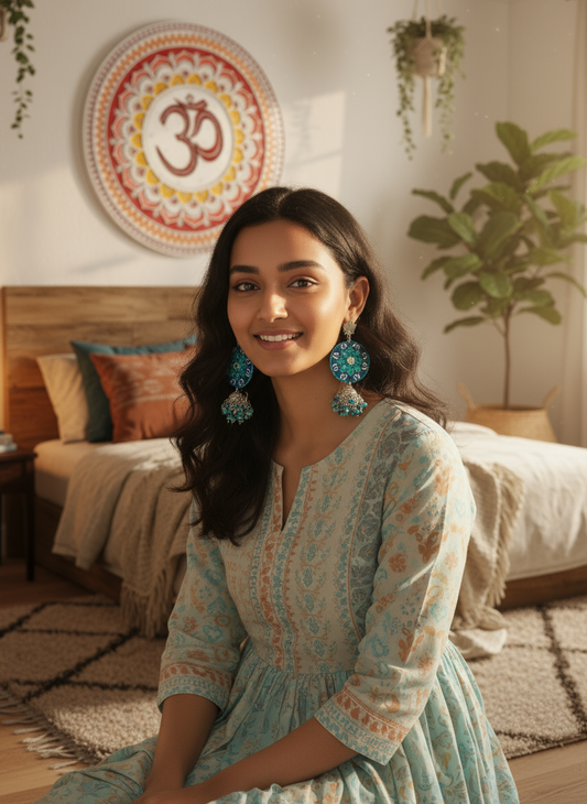 Azure Mandala: Hand-Painted Blue Lotus & Jhumki Earrings 💙