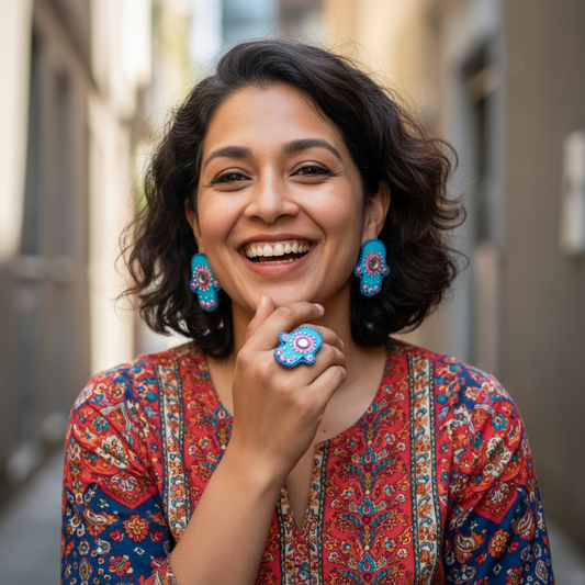 🪬 Handmade Hamsa Hand Jewelry Set – Stud Earrings & Matching Ring