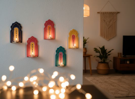 🪔 Handpainted Jharokha Style Wall Hanging T-Light Holder – Available in 5 Colours