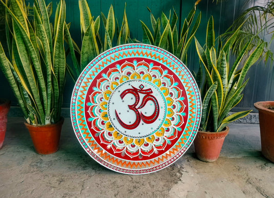 🕉️ Om Mandala Wall Art – Handcrafted Lippan Mud & Mirror Work